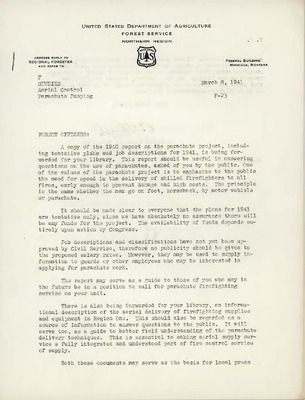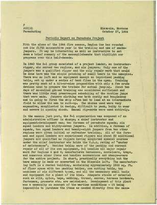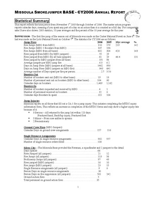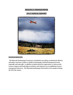 The Missoula Smokejumpers Base annual reports contain a summary of activities during the year and statistics on practice and fire jumps.